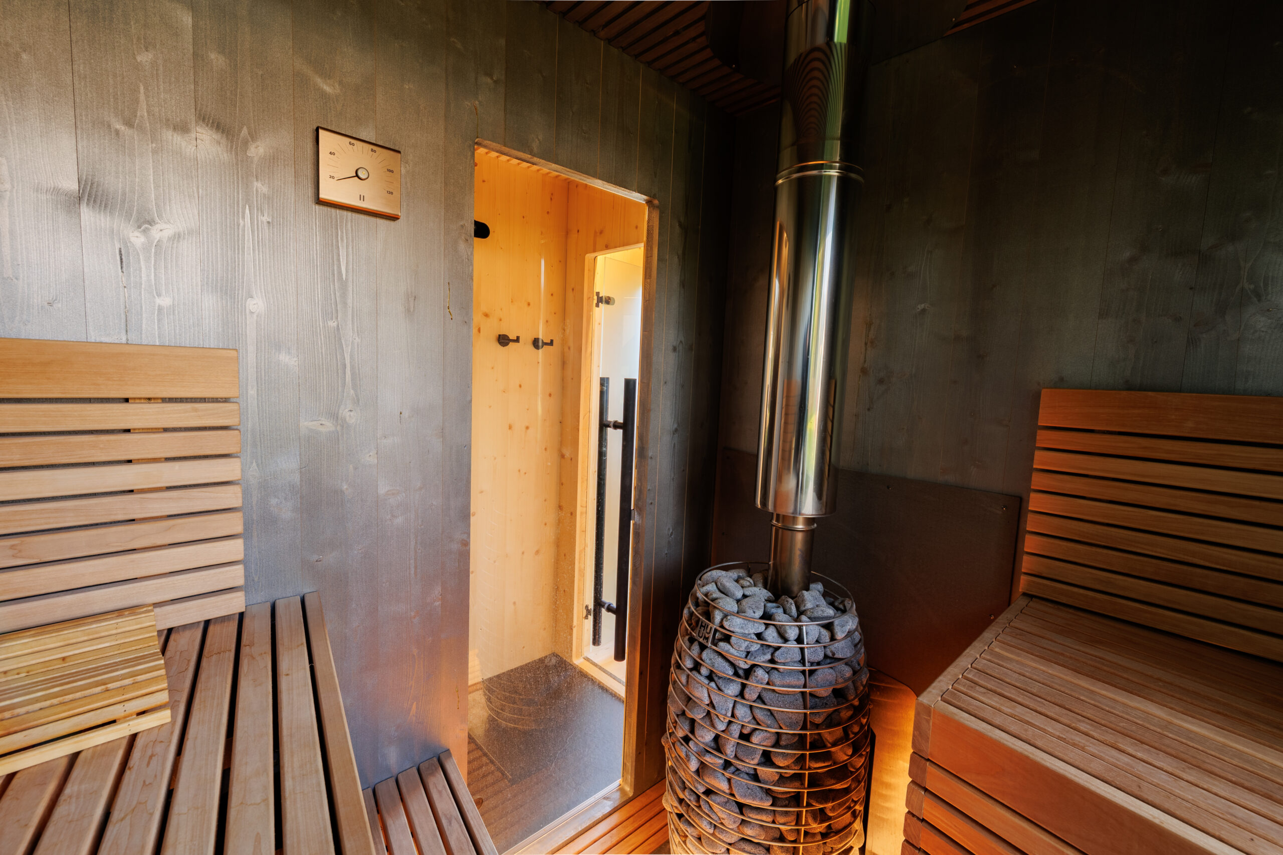 Zermatt on meie kompaktseim täisvarustusega saun, mis on loodud neile, kes hindavad luksuslikku disaini väiksemas ruumis. Hubase puhkeruumi ja avara 4 m² saunaruumiga saun pakub täielikku heaoluelamust vaid 7,25 m² suuruses ruumis. Vastupidavast ja jätkusuutlikust CLT-puidust valmistatud ning tipptasemel detailidega, nagu termolepast istmed ja Londonist pärit Buster + Punch detailid, viimistletud Zermatt ühendab põhjamaise minimalismi igapäevase mugavusega. Olenemata sellest, kas see asub järve ääres, metsas või teie enda tagahoovis, on see vaikne koht, kus aeglustada ja end hästi tunda.