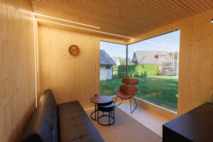 Saunad on valmistatud kulutõhusast CLT-puitmaterjalist, mis on äärmiselt vastupidav, suurepärase soojusisolatsiooniga ja kõrge tulepüsivusega.